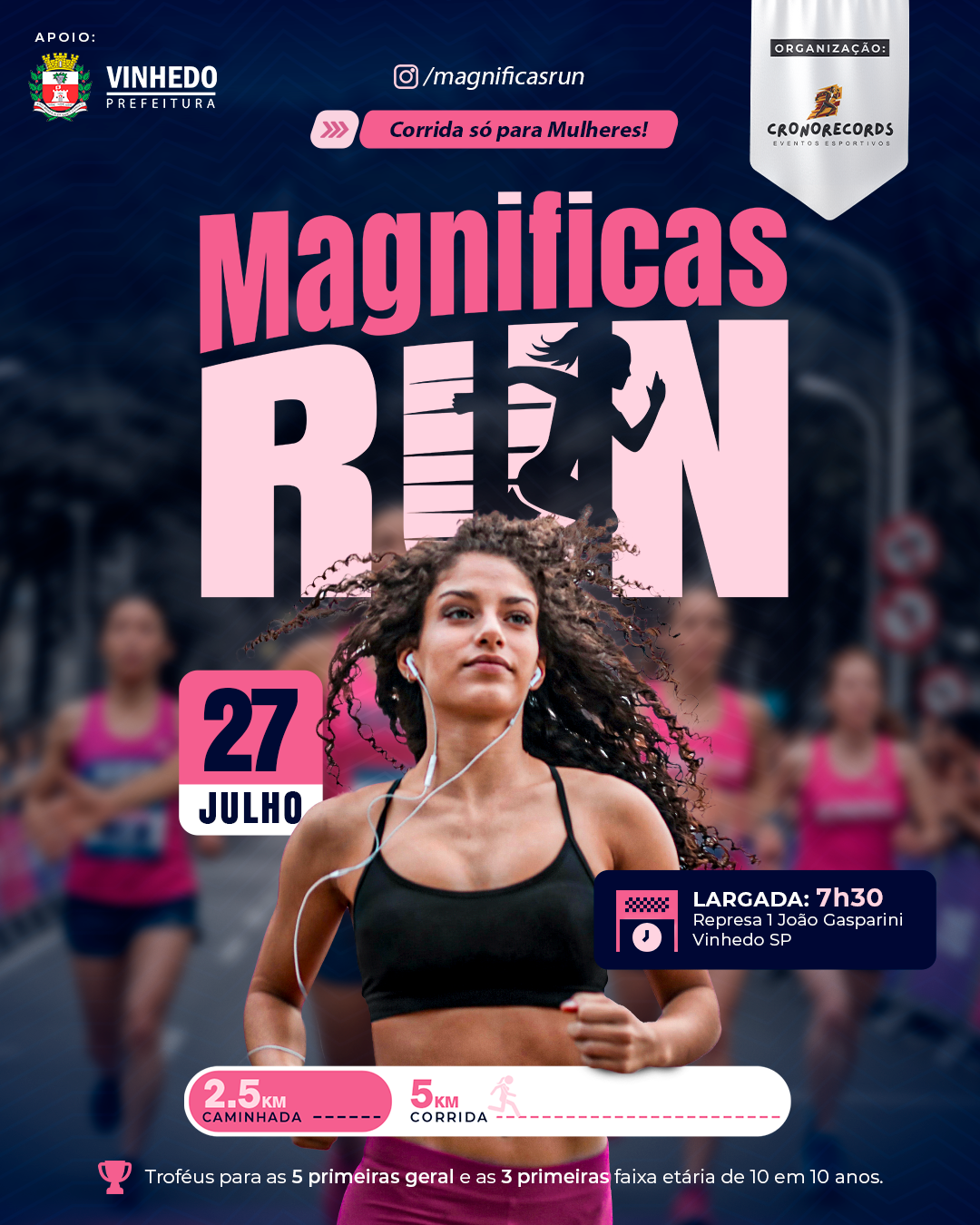 Evento será realizado no dia 27/07/2025, com premiação em troféus para as cinco primeiras colocadas geral, e as três primeiras por faixa etária de 10 em 10 anos. Largada: 07h30